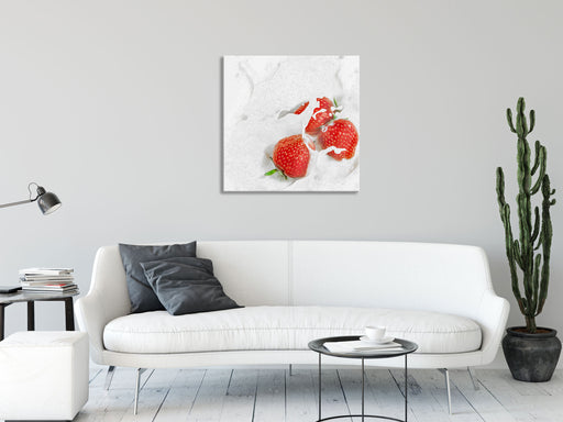 Original Preis34,95 €Erdbeeren schwimmen in Milch, Glasbild Quadratisch