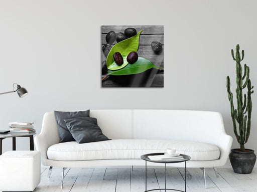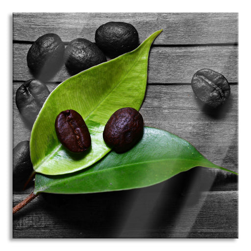 Original Preis34,95 €kleine Kaffeebohnen auf Blättern, Glasbild Quadratisch