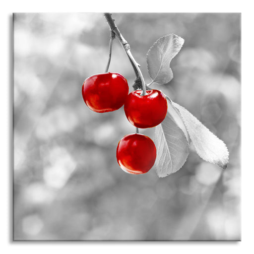 Original Preis34,95 €glänzende Kirschen am Zweig, Glasbild Quadratisch