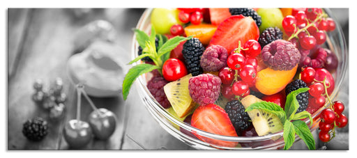Original Preis64,95 €Obstsalat in der Schüssel, Glasbild Panorama