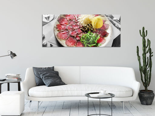 Original Preis64,95 €saftiges Carpaccio, Glasbild Panorama