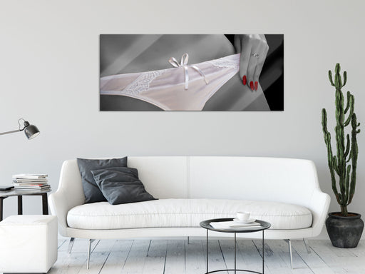 Original Preis64,95 €weißes Dessous, Glasbild Panorama