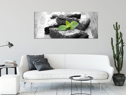 Original Preis64,95 €köstlicher Brownie mit Minze, Glasbild Panorama