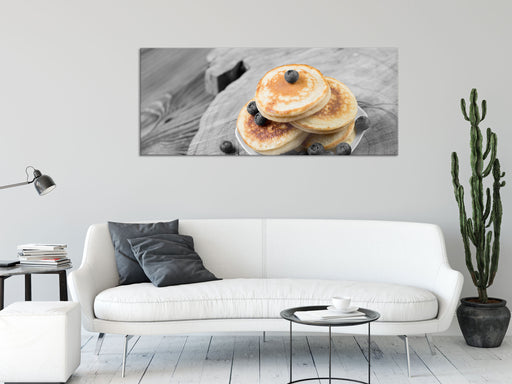 Original Preis64,95 €leckere Pancakes mit Blaubeeren, Glasbild Panorama