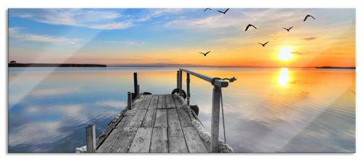 Original Preis64,95 €schöner Steg mit Möwen, Glasbild Panorama