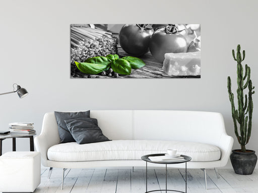 Original Preis64,95 €Spaghetti mit Tomaten und Parmesan, Glasbild Panorama