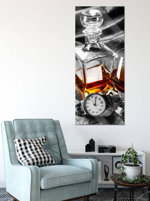 Original Preis64,95 €Man Things mit Whiskey und Uhr, Glasbild Panorama