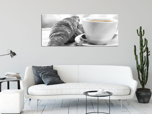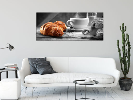 Original Preis64,95 €Croissants und Kaffee, Glasbild Panorama