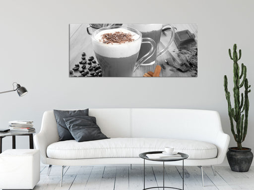 Original Preis64,95 €heiße Schokolade und Kaffee, Glasbild Panorama