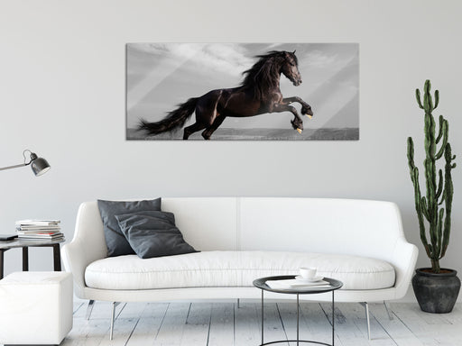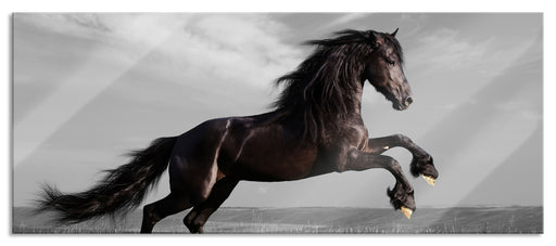 Original Preis64,95 €anmutiger Hengst auf Wiese, Glasbild Panorama
