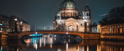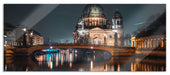 Berliner Dom an der Spree bei Nacht, Glasbild Panorama