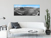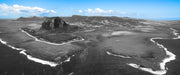 Blick von oben auf die Trauminsel Mauritius B&W Detail, Glasbild Panorama
