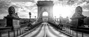 Brücke in Budapest bei Sonnenuntergang, Monochrome, Glasbild Panorama