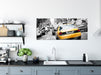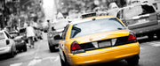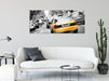 Gelbe Taxis am Times Square in New York B&W Detail, Glasbild Panorama