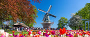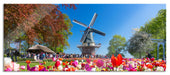 Holländisches Tulpenmeer vor Windmühle, Glasbild Panorama