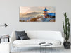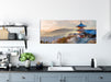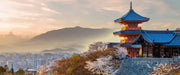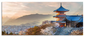 Japanischer Tempel vor nebeliger Stadt, Glasbild Panorama