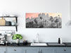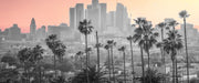 Palmen vor Skyline von Los Angeles B&W Detail, Glasbild Panorama