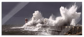 Aufbrausende Wellen an Küste, Glasbild Panorama