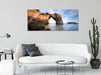 Berg mit Torbogen über dem Meer, Glasbild Panorama