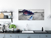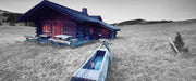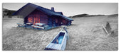 Blockhaus mit Wassertrog Dämmerung B&W Detail, Glasbild Panorama