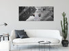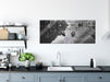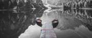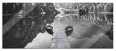 Boote am Steg des Pragser Wildsee B&W Detail, Glasbild Panorama