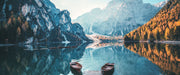 Boote am Steg des Pragser Wildsee, Glasbild Panorama