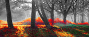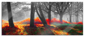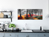 Bunte Herbstbäume sonnenbestrahlt B&W Detail, Glasbild Panorama