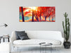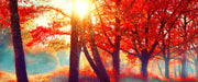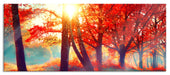 Bunte Herbstbäume sonnenbestrahlt, Glasbild Panorama
