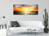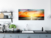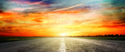 Endlose Straße im Sonnenuntergang, Glasbild Panorama