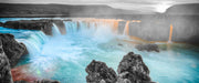 Goðafoss bei Sonnenuntergang, Glasbild Panorama