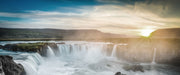 Goðafoss bei Sonnenuntergang, Glasbild Panorama