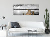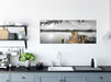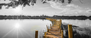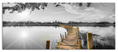 Holzbrücke über Natursee im Sommer B&W Detail, Glasbild Panorama