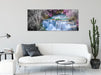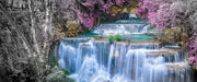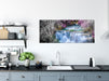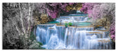 Kaskaden zwischen bunt blühenden Bäumen B&W Detail, Glasbild Panorama