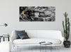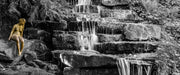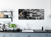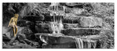 Kleiner Wasserfall über Steinplatten B&W Detail, Glasbild Panorama