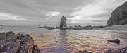 Küstenlinie mit Sonnenuntergang, Glasbild Panorama