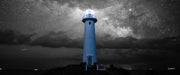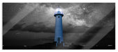 Leuchtturm in klarer Sternennacht B&W Detail, Glasbild Panorama