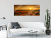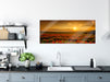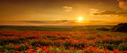 Mohnblütenfeld bei Sonnenuntergang, Glasbild Panorama