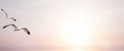Möwen am Meer bei Sonnenaufgang, Glasbild Panorama