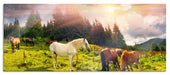Mustangs Pferde auf den Bergen, Glasbild Panorama