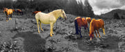 Mustangs Pferde auf den Bergen, Glasbild Panorama