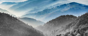 Nebelige Berglandschaft im Herbst B&W Detail, Glasbild Panorama