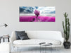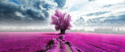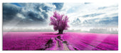 Pinkes Feld mit pinkem Baum, Glasbild Panorama