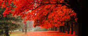 Rot gefärbter Park im Herbst, Glasbild Panorama