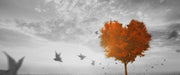 Roter Herzbaum im Herbst, Glasbild Panorama