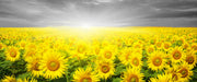 Sonnenblumen Sonnenuntergang, Glasbild Panorama