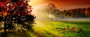 Sonnenuntergang an Lichtung, Glasbild Panorama