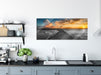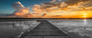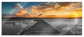 Steg am See bei Sonnenuntergang B&W Detail, Glasbild Panorama