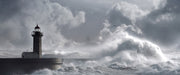 Sturmwellen Leuchtturm Portugal, Glasbild Panorama