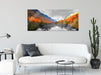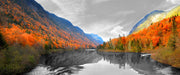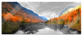 Talfluss zwischen herbstlichen Bergen B&W Detail, Glasbild Panorama
