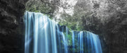 Tropischer Wasserfall im Wald B&W Detail, Glasbild Panorama